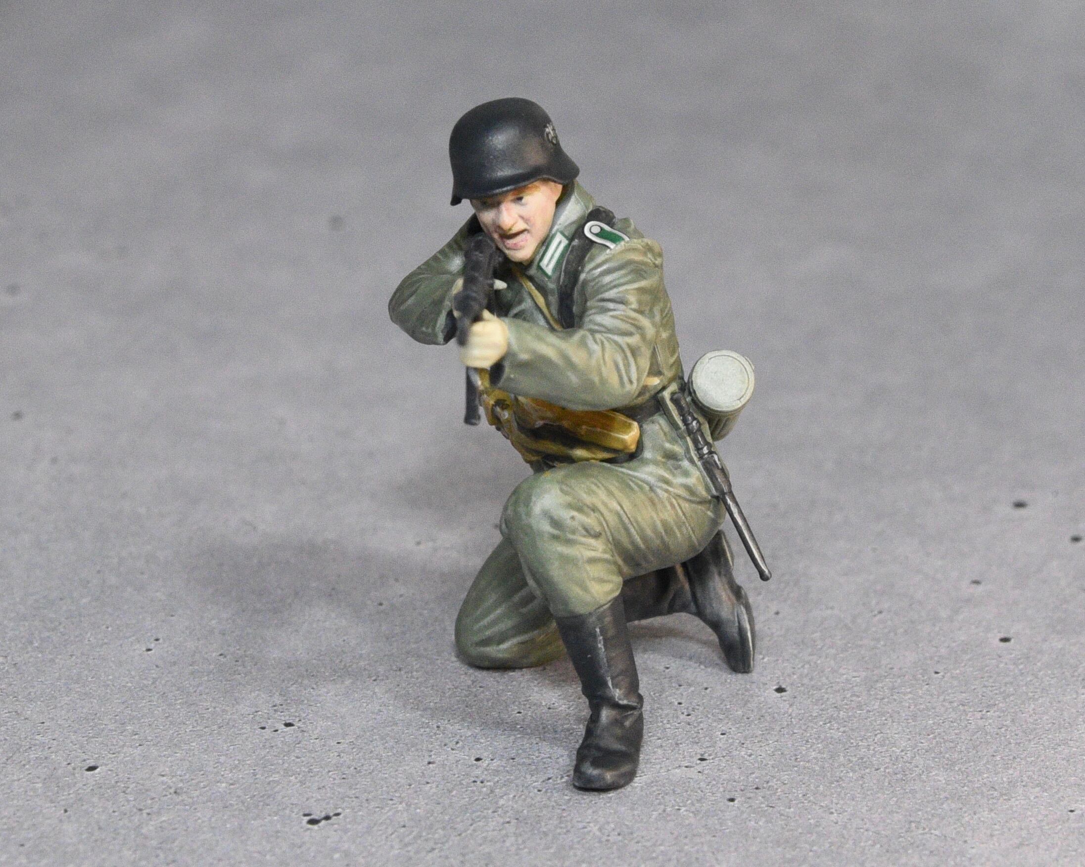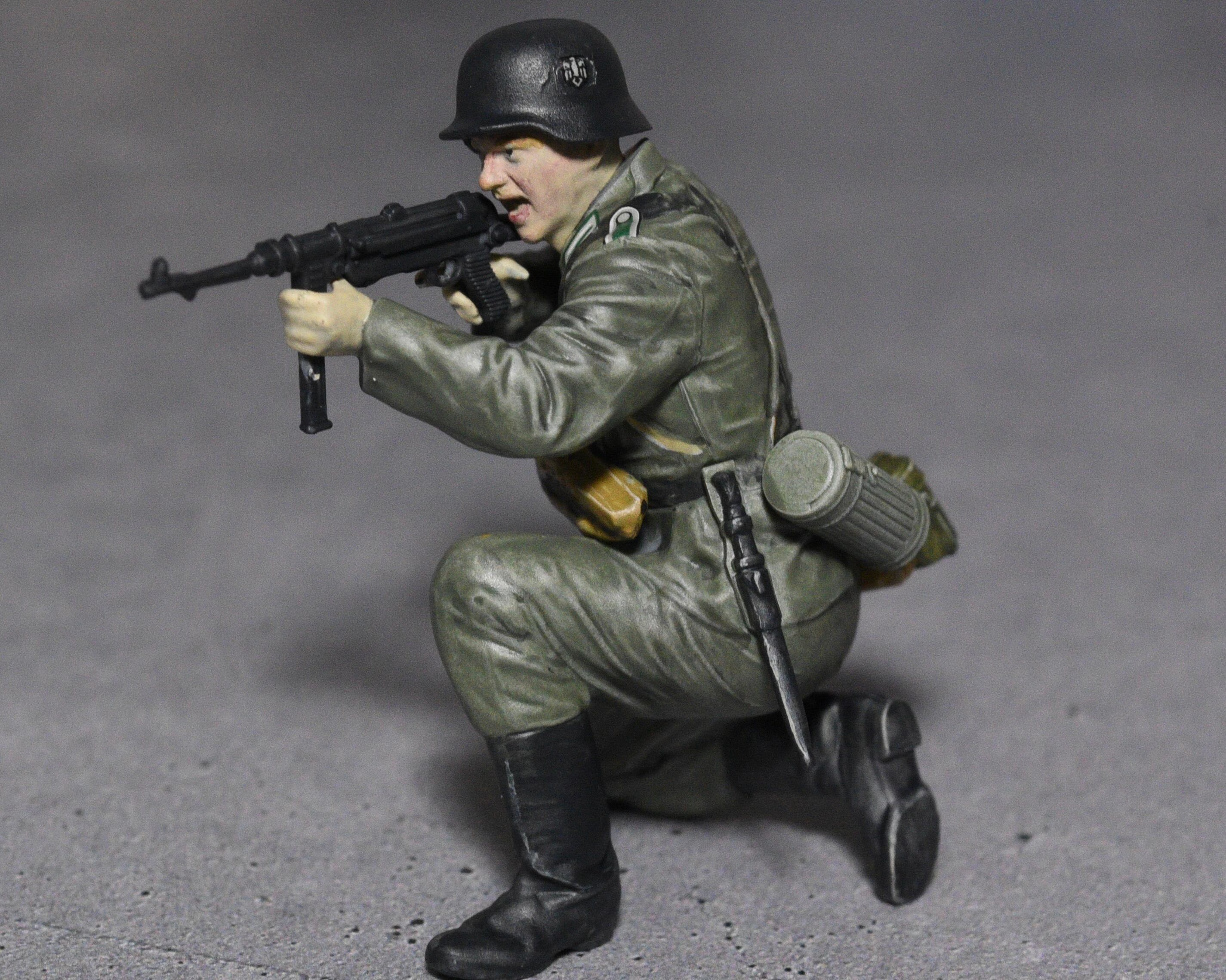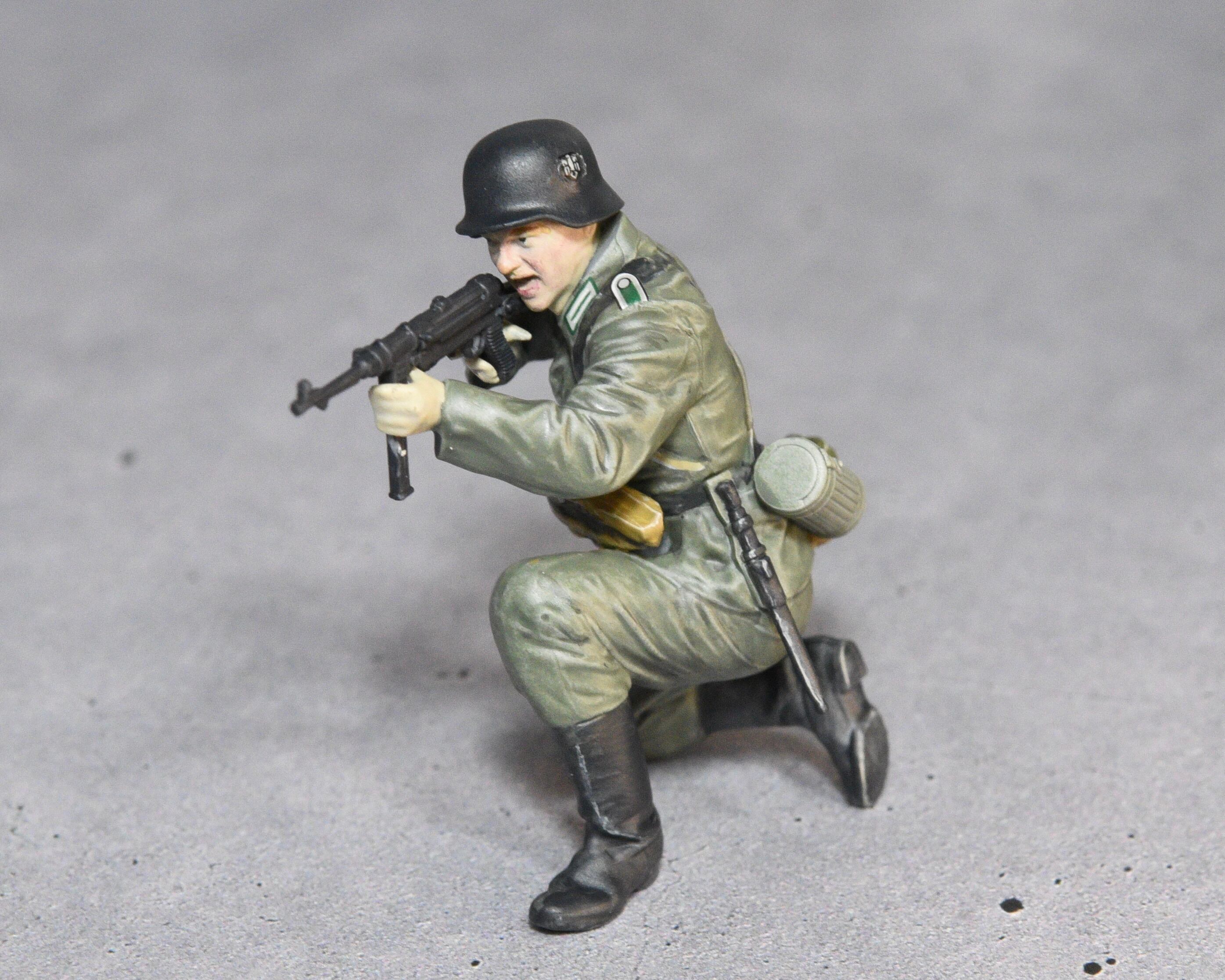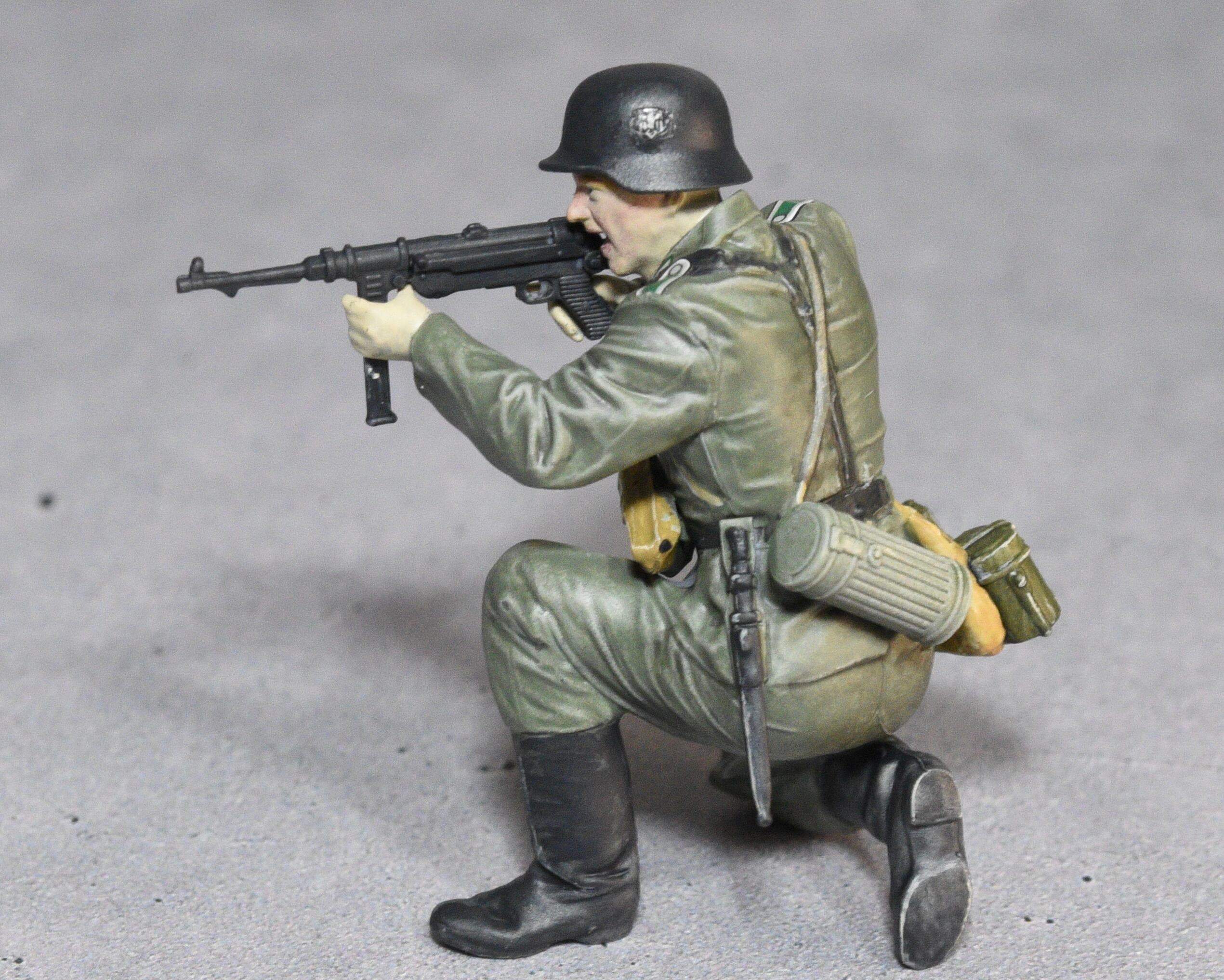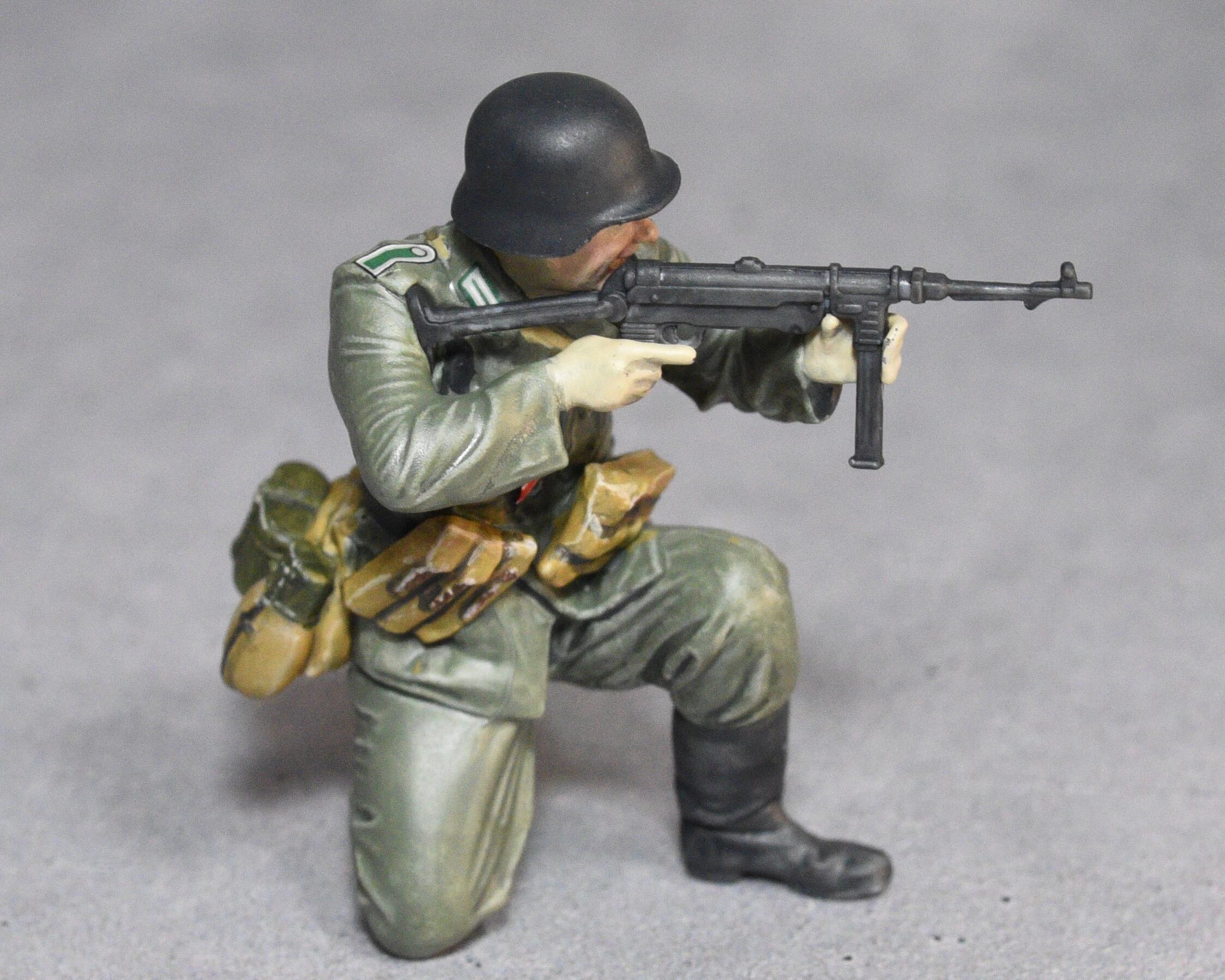 タミヤ 1/35 ドイツ機関銃チームより、MP40射撃手の塗装完成品です。